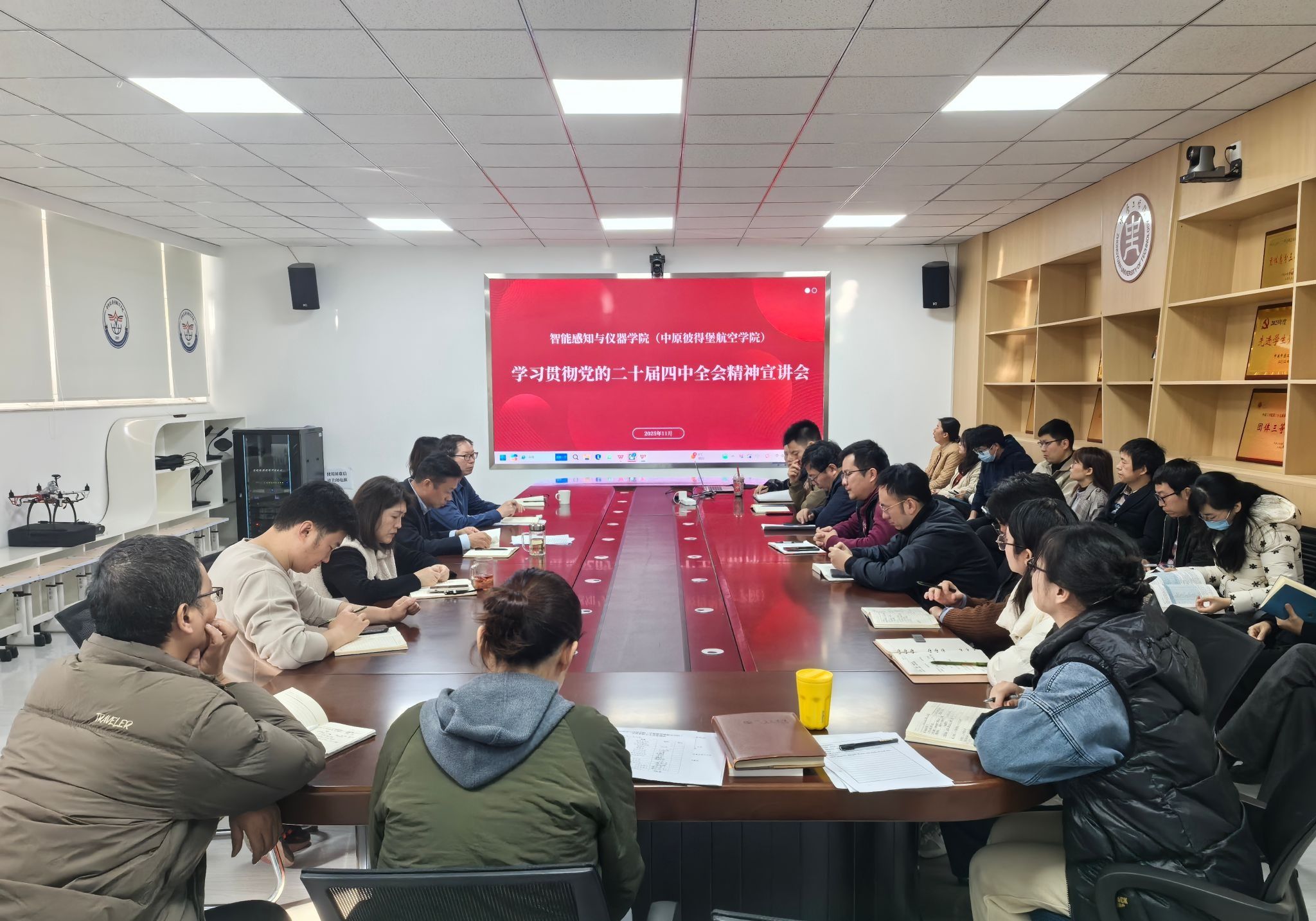 近日,中原彼得堡航空学院党总支召开学习贯彻党的二十届四中全会精神宣讲会。全体党员干部参加会议。