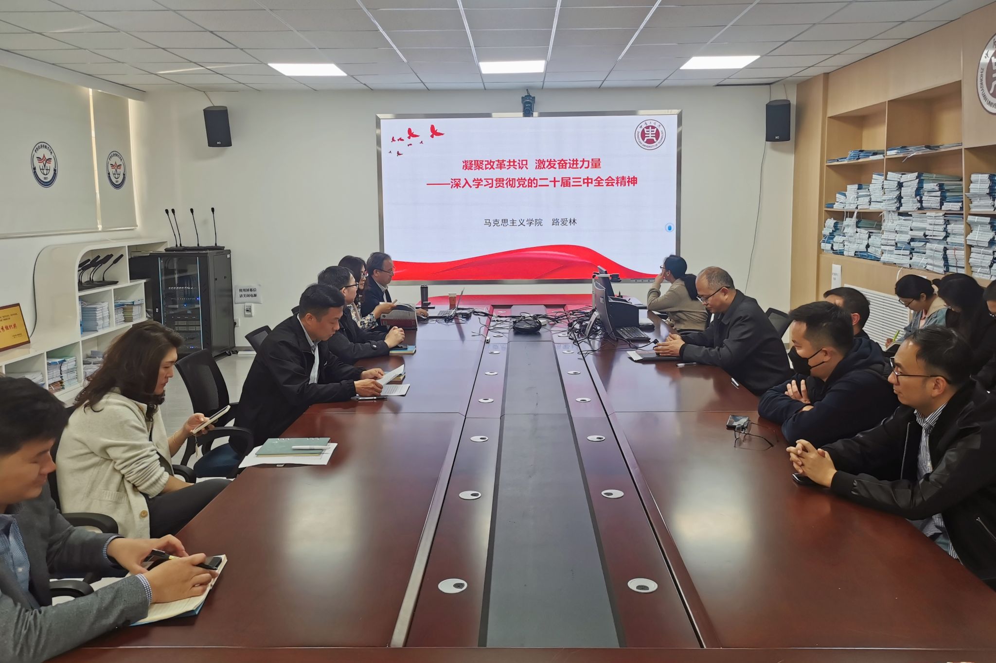 10月29日,色花堂 召开党的二十届三中全会精神宣讲会,色花堂 理论宣讲团成员、马克思主义学院副院长路爱林应邀作专题宣讲。学院全体党员干部参加,学院党总支书记轩信飞主持宣讲会。