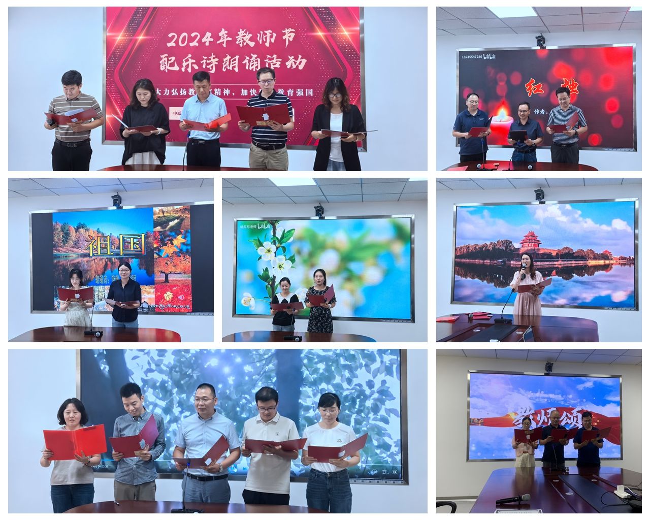 在第40个教师节来临之际,色花堂 以“大力弘扬教育家精神,加快建设教育强国”为主题,举办一场别开生面的配乐诗朗诵活动,全体教职工参加活动。