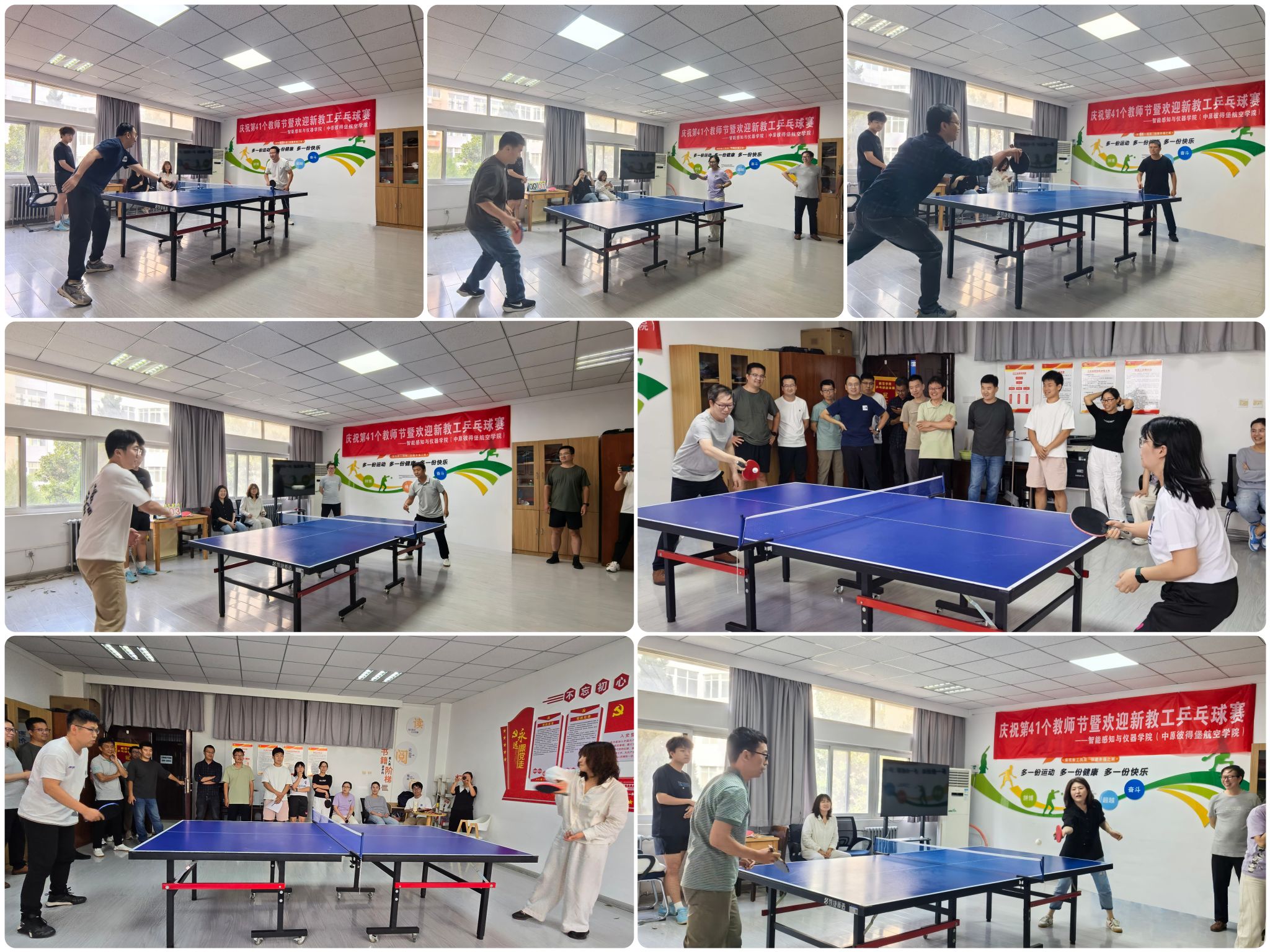 为热烈庆祝第41个教师节,同时欢迎新入职教工融入学院大家庭,9月9日下午,中原彼得堡航空学院分工会于学院“工会小家”组织了新老教工乒乓球联谊赛。全体教职工欢聚一堂,以球会友,共庆教师节。