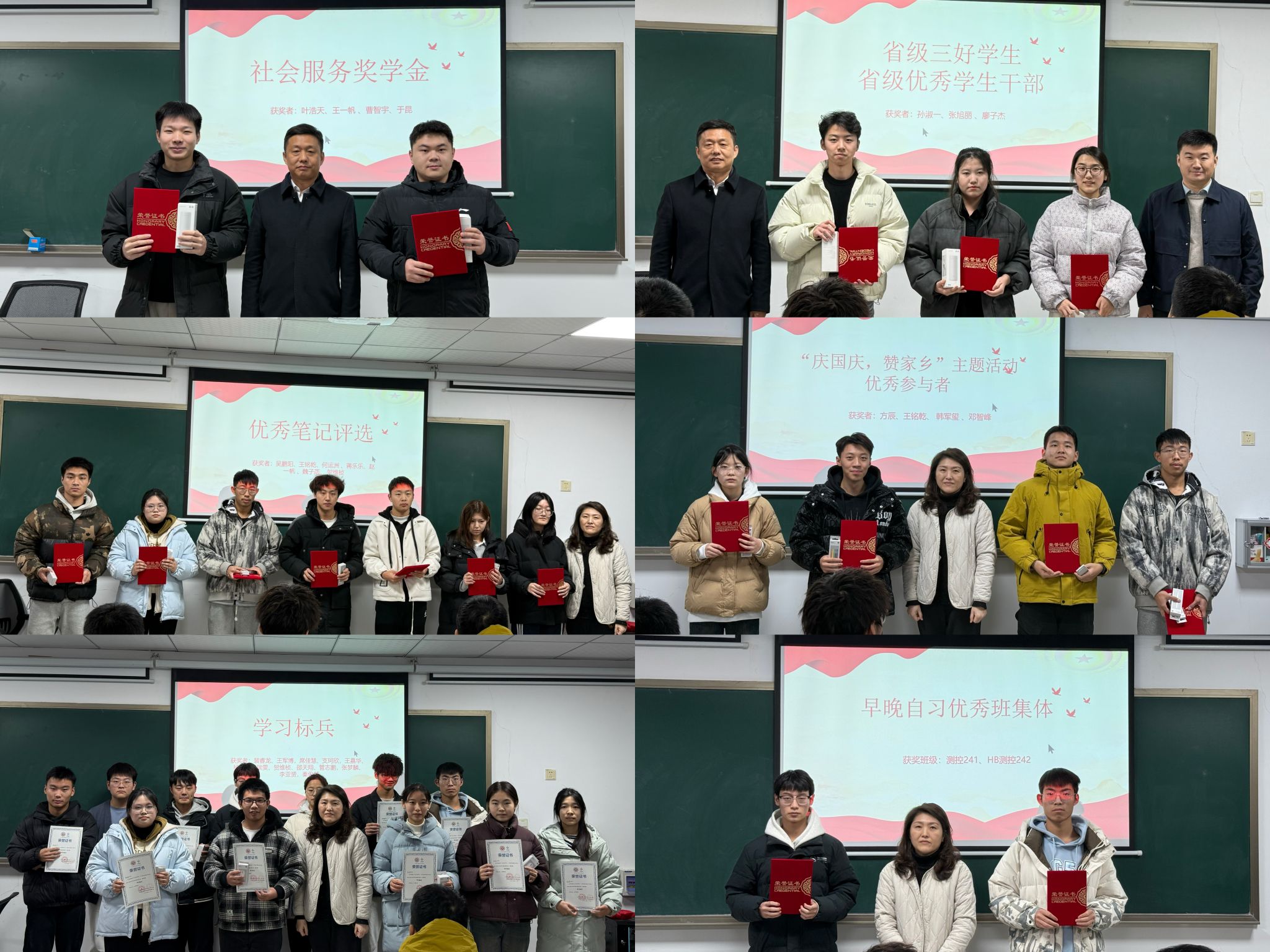 在颁奖环节,主持人依次宣读了各类表彰决定,包括社会服务奖学金获得者、省级优秀学生干部、省级三好学生、学生会先进个人、团委先进个人等多个奖项。获奖学生们依次上台,学院领导为他们颁发荣誉证书与奖品,并合影留念。