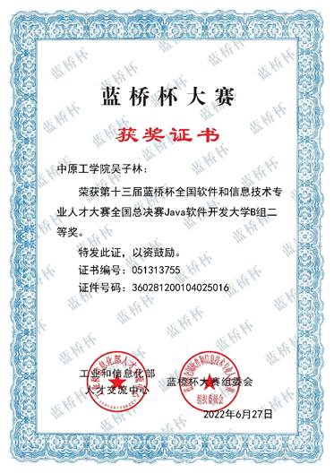 2022年第十三届“蓝桥杯”大赛河南省赛和全国总决赛分别于2022年4月和6月举行,软件19级学生吴子林获得“Java软件开发大学B组”全国二等奖、软件19级学生王则凯带领团队获得本届蓝桥杯首次设置的“数字科技创新赛虚拟形象创新技术赛道”全国三等奖,这两项蓝桥杯国赛成绩,刷新了航空学院蓝桥杯国赛成绩新高。